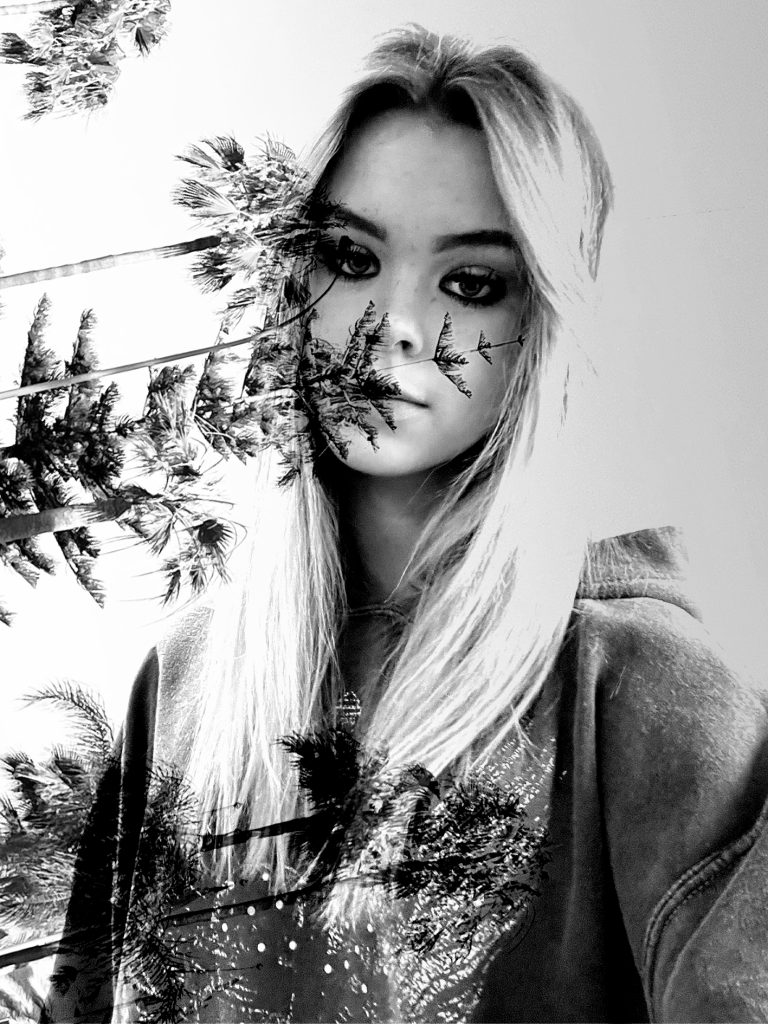 This is my first Adobe Photoshop self portrait. This portrait idea is an example of multiple exposure. This was created using two different images, an image of me and an image of trees I took. I decided I wanted to include an aspect of nature in one of my designs, as I’m really fond of nature and the benefits it gives us. I’m always going on walks and taking photographs of nature (Figure 1). To create this, I turned these two images black and white and edited them with a high exposure etc, anything to make the background as white as possible, whilst keeping the subject of the image visible. This was the most effective way to overlay the image of the trees on top, to place them together with a blend method evenly with no harsh lines and create one seamless piece. I decided to place the trees image sideways on, just slightly covering my face. This further isolates the focal point of the image away from the background. Moreover, I believe the use of black & white creates a timeless, classic feel, which allows us to really focus on the subject of the image. It also highlights the amount of tonal variation and contrast. I really like this technique because it shows how you can use two completely different types of images and they still work together to create a detailed outcome, which is bold and dynamic.