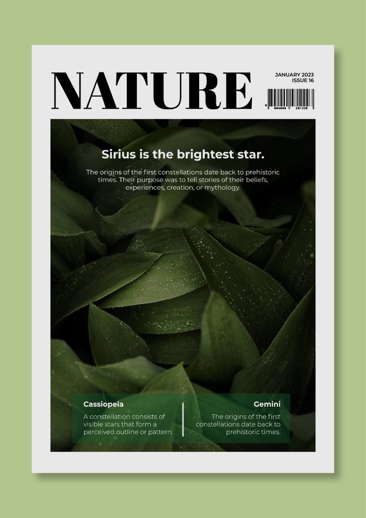 Figure 1: Freepik (2024) Professional Outside Nature Magazine Cover template. https://wepik.com/template/professional-outside-nature-magazine-cover [Accessed 2 October 2024].