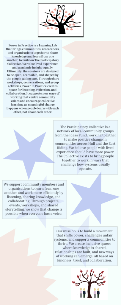 The Power in Practice campaign is designed to support The Participatory Collective by creating a clear, accessible, and values-led digital presence that promotes participation, shared learning, and community connection. The concept is a a Learning Lab, so the campaign brings together community groups, individuals, researchers, and organisations to explore new ways of working collaboratively. The campaign functions across multiple platforms, including a high-fidelity website prototype, social media content, and supporting digital and print materials, ensuring consistent communication while allowing flexibility for different audiences and contexts. Firstly, the main element is the website which includes lots of information, storytelling, and engagement. The site introduces the Participatory Collective, explains its purpose and values, and showcases community groups involved through dedicated pages. It also hosts information about Learning Lab events, session posters, and opportunities to get involved, such as sign-ups and sharing stories. The website is designed with accessibility in mind, using clear navigation, typography, and a calm visual tone to encourage involvement and participation. It’s also recognised that the platform recognises that many users may access the Collective online through their phones rather than desktop devices, however the desktop site is still successful which supports responsive layout and adaptive design. Moreover, social media plays a supporting but essential role in the campaign, particularly Instagram. It’s not just used as a promotional method, social media is also used to guide audiences back to the website while reinforcing the campaign’s main participatory values. Instagram stories and posts introduce the Learning Lab concept, highlight upcoming events, and provide further context. The content is written in clear language, ensuring it feels inclusive. Session posters and event-focused stories provide clear calls to action, such as visiting the website or signing up for updates, creating a consistent journey from social media to deeper engagement. In addition, the tone of the campaign is calm, thoughtful, and centred around people. Instead of being overly polished or corporate, the visual and written language reflects care, openness, and collaboration. This tone aligns closely with the Participatory Collective’s beliefs of working differently. The design elements such as soft colour palettes, recurring shapes, and generous spacing contribute to a welcoming and friendly atmosphere, whilst, for example, storytelling is incorporated throughout the campaign to centre voices, experiences, and shared learning. The key audiences for the campaign include local community groups involved in the Ideas Fund, individuals with lived experience, students and researchers, and organisations such as universities, councils, or charities who are interested in the participatory ways of working. The campaign is intentionally broad but carefully framed to avoid isolating any group. It encourages being open and shared learning, the Learning Lab is positioned as a space where nothing is prioritised over another. This ensures community members do not feel intimidated and that everyone feels included, while researchers and organisations are encouraged to listen and engage differently. Adding to this, the primary goals of the campaign are to raise awareness of the Participatory Collective, encourage participation in Learning Lab events, and support the growth of a connected movement based on shared values. Instead of just focusing on how many people interact, success is measured through meaningful engagement, such as sign-ups, participation in sessions, story contributions, and ongoing involvement. The campaign also aims to strengthen the Collective’s identity by presenting its work through a combined digital system, helping other audiences understand what the Collective stands for and how to get involved. Ultimately, all elements of the campaign connect back to the Participatory Collective’s core values and needs. The emphasis on participation reflects the belief that communities should have faith. Storytelling and co-created ideas, such as zines and shared reflections, align with the Collective’s commitment to emphasising the lived experience. Essentially, The Learning Lab format supports knowledge exchange the most. Finally, by working across platforms in a cohesive and accessible way, the campaign supports the Collective’s vision of becoming both a physical and virtual space for collaboration, learning, and systemic change.